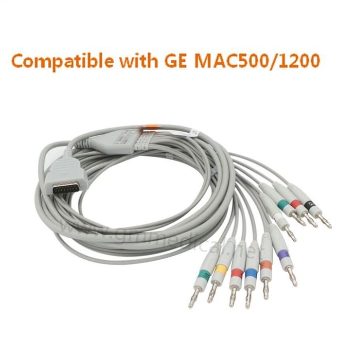 EKG-kabel i ett stykke og 10-blyledninger som er kompatible med GE MAC500/1200,AHA,Banana