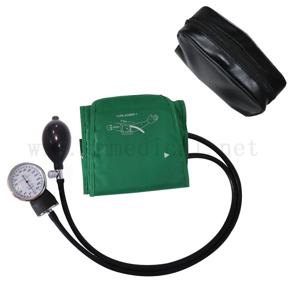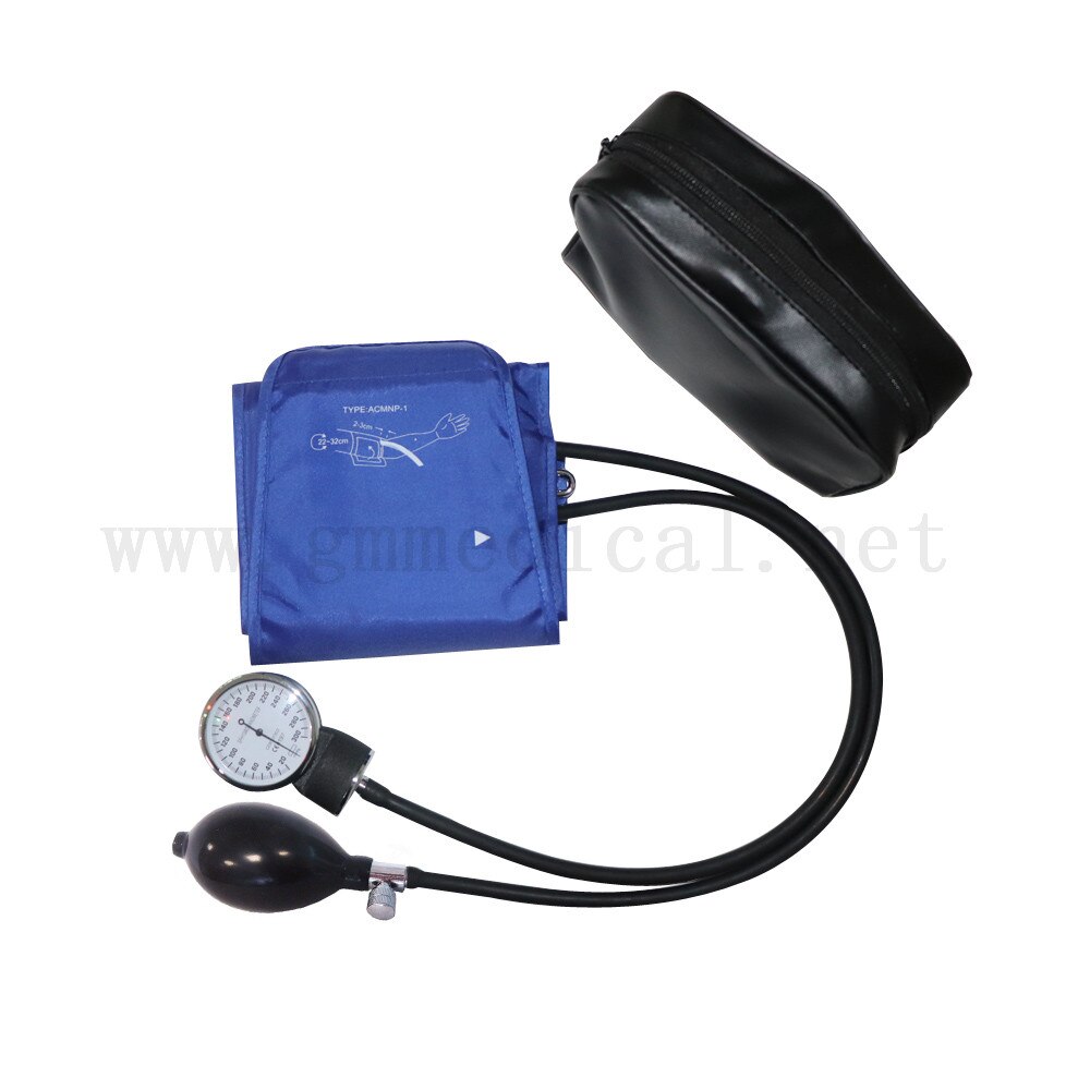 Manuell blodtrykksmansjett for voksne, Dobbeltrør mansjett med trykkmåler og oppblåsingspære, med svinekjøttpose.