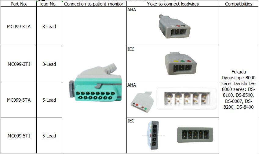Kompatibel fukuda DS8100, DS8200, DS8500 3-leder EKG-kabel 15pin