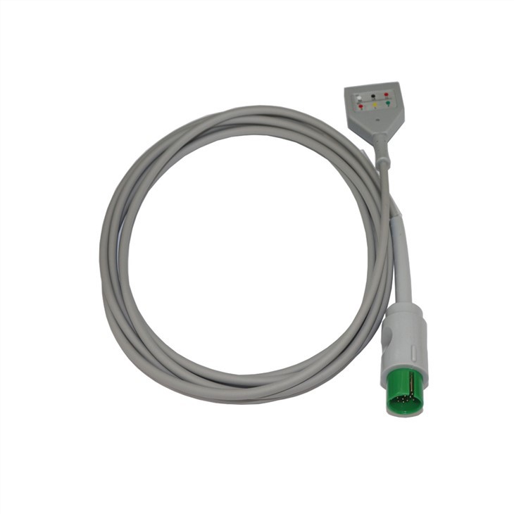 Denne lille, lette EKG-trunkkabelen ble designet med tanke på nyfødte for å bidra til å minimere trekking og irritasjon av den sensitive, sarte huden til disse pasientene. Denne 3-avlednings-EKG-trunkkabelen er avbildet nedenfor (helt til venstre) med de tradisjonelle 3-avlednings- og 5-avlednings-EKG-trunnkablene avbildet i midten og helt til høyre.