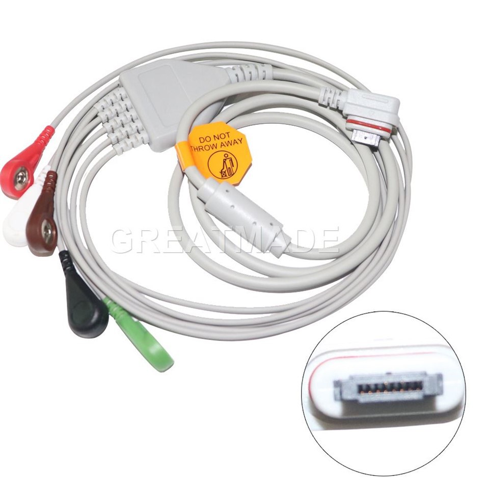KompatibelMed: OEM NO . 2008594-003 5- bly Holter EKG kabel blywires for Ge Seer Light, 2-kanal (5-LD), AHA, SNAP