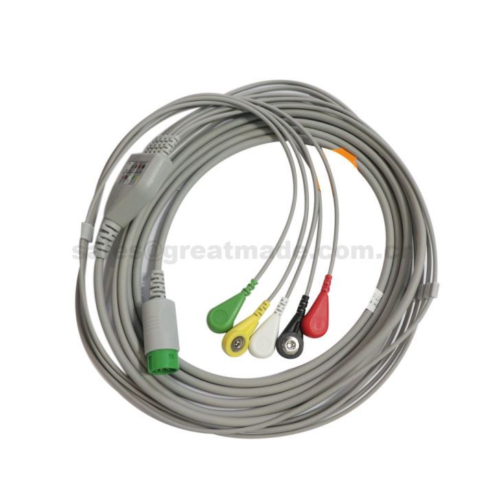 Ett-delt 5-leder skjold EKG-kabel kompatibel med Mindray Beneview T5. T6. T8, PM5000, PM 6000, Snap, IEC, 12ft, Round 12PIN