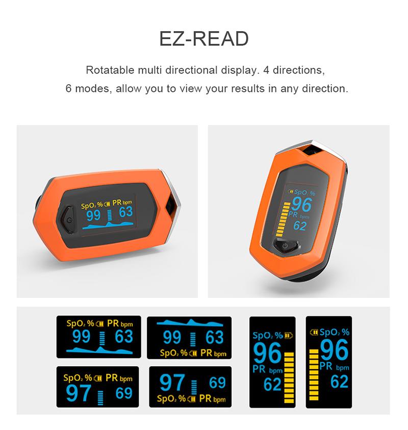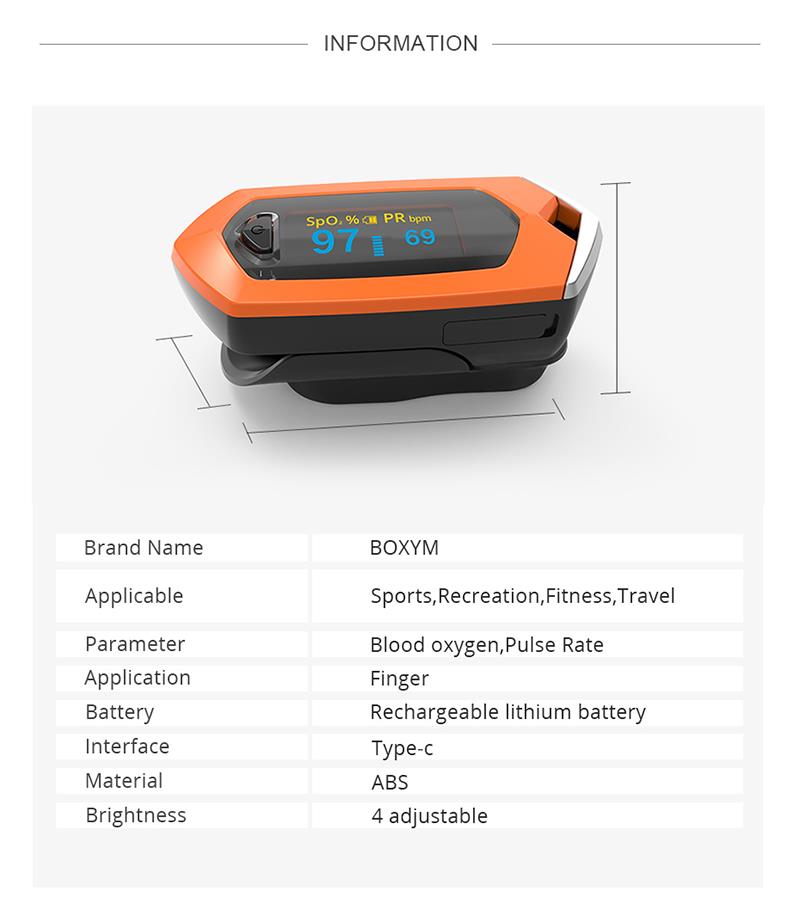 Én nøkkelstjerne, kan ladbar, akselerasjonssensor, 8s automatisk avstengning, PR & SPO2-måling, enkel bærbar