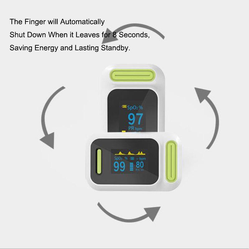 Finger Pulse Oximeter er en rimelig og nøyaktig måte å sjekke pulsfrekvenser og oksygenmetning i blodet på. Den viser også Plethysmograph-bølgen, som garanterer nøyaktigheten. Selvjusterende fingerklemme pluss enkel design med en knapp gir enkel betjening. Leveres med bæreveske og nakke / håndleddsnor. Praktisk for sykepleier og lege å henge i nakken. Liten bærbar størrelse gjør det enkelt å håndtere og bære. Passer til daglig bruk, måle helsen din når som helst.