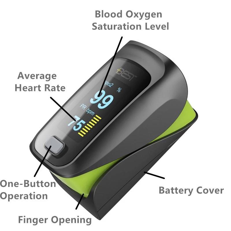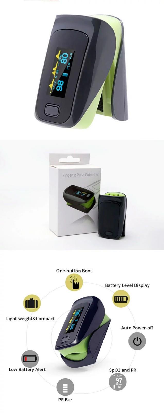 Finger Pulse Oximeter er en rimelig og nøyaktig måte å sjekke pulsfrekvenser og oksygenmetning i blodet på. Den viser også Plethysmograph-bølgen, som garanterer nøyaktigheten. Selvjusterende fingerklemme pluss enkel design med en knapp gir enkel betjening. Leveres med bæreveske og nakke / håndleddsnor. Praktisk for sykepleier og lege å henge i nakken. Liten bærbar størrelse gjør det enkelt å håndtere og bære. Passer til daglig bruk, måle helsen din når som helst.
